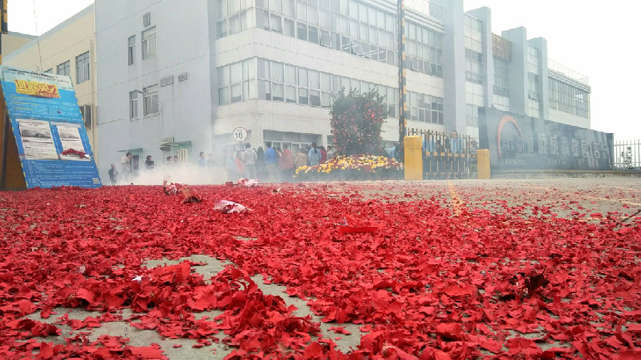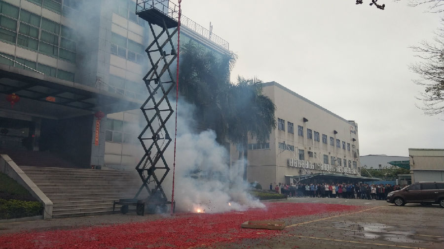 9點58分,自動化裝備公司內(nèi),副總裁成再育先生點燃鞭炮;10點58分,杏壇科技園內(nèi),常務(wù)副總裁何偉先生點燃鞭炮。震耳欲聾的鞭炮聲中,員工們互相祝賀,感受著新年的喜悅,寄望新的一年工作順利。