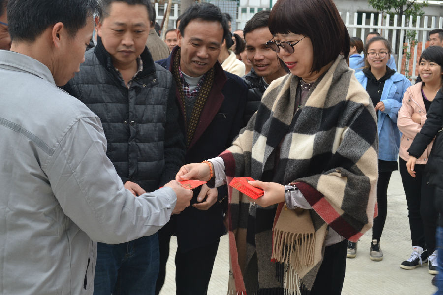 9點18分,是一個非常有意義的重要時刻,伴隨著總裁莫綺顏女士點燃鞭炮,開工儀式便拉開了序幕。鞭炮齊鳴兆祥瑞,開門利是博好彩!鞭響轟鳴,紅屑滿地,預(yù)示著順威股份在新的一年紅紅火火,大吉大利!同時,公司給現(xiàn)場每位員工派發(fā)開工利是,祝愿大家在新的一年里工作順利,幸福健康!